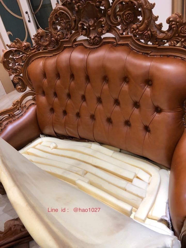 這次施工困難點在於牛皮?沒有更換,拆除卯釘和釘子要額外小心不能傷到皮革和木頭?,再加上六人座沙發是圓弧造型,海綿要特殊裁切造型。