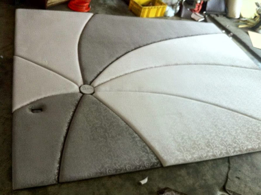 長期配合的裝潢公司拿了一組設計師所設計主臥室牆面造型木板片來繃布
