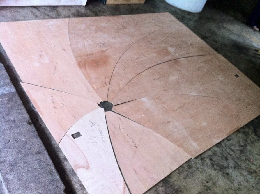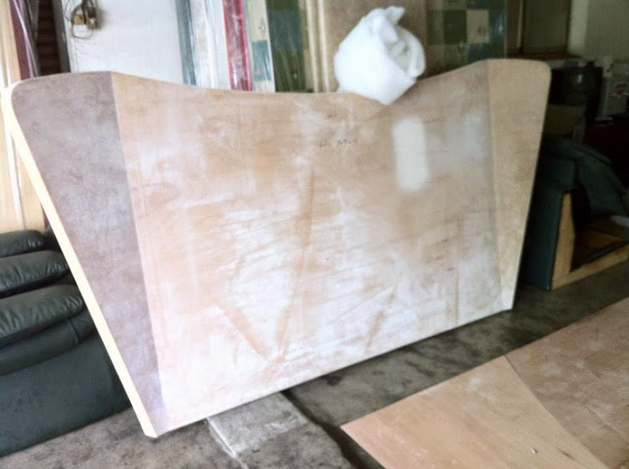 第一次碰到弧度造型的,好險在木板片的最大寬度沒有超過布的幅寬,所以每一片都能裱布。